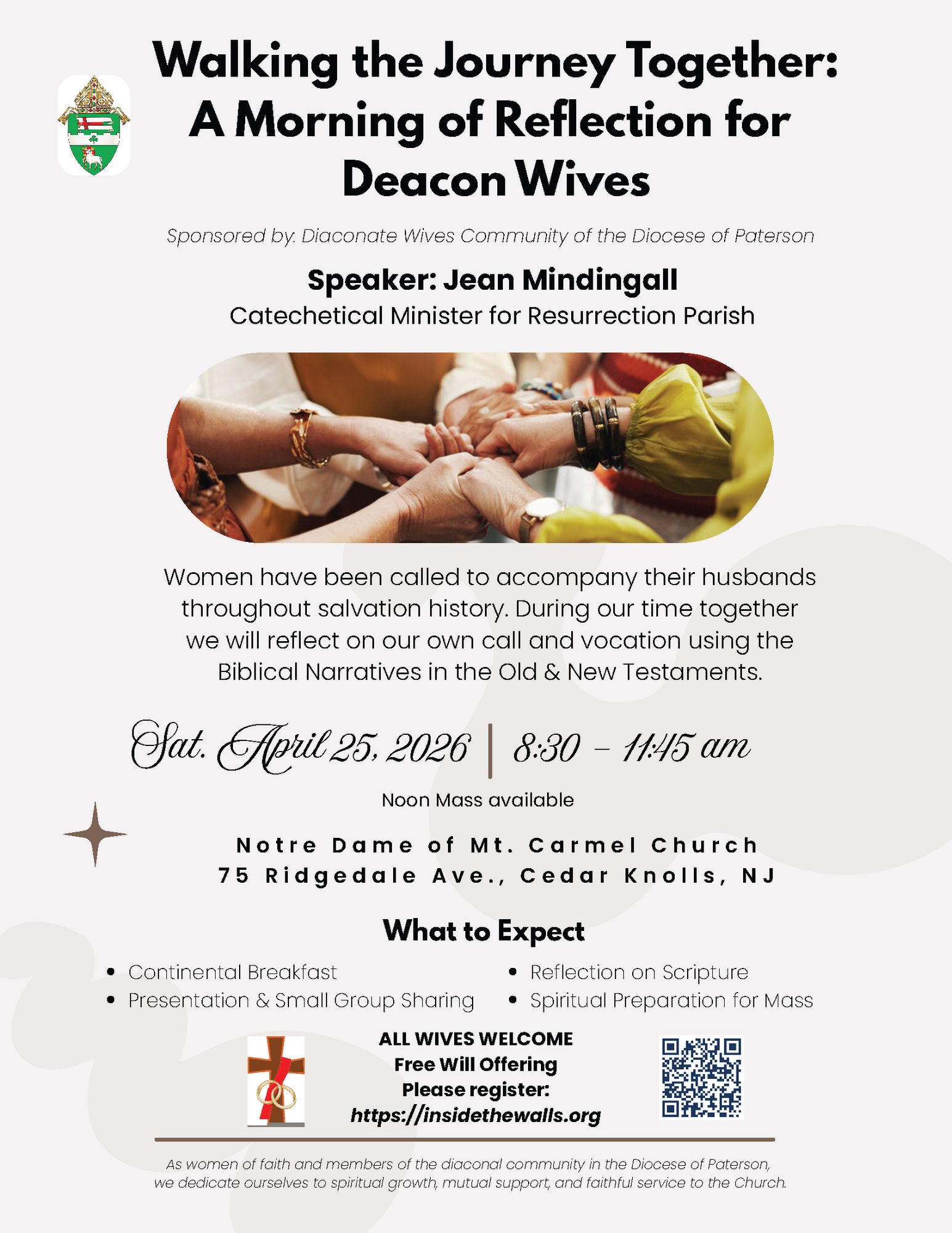 As women of faith and members of the Diaconal community in the Diocese of Paterson, we dedicate ourselves to spiritual growth, mutual support, and faithful service to the Church.